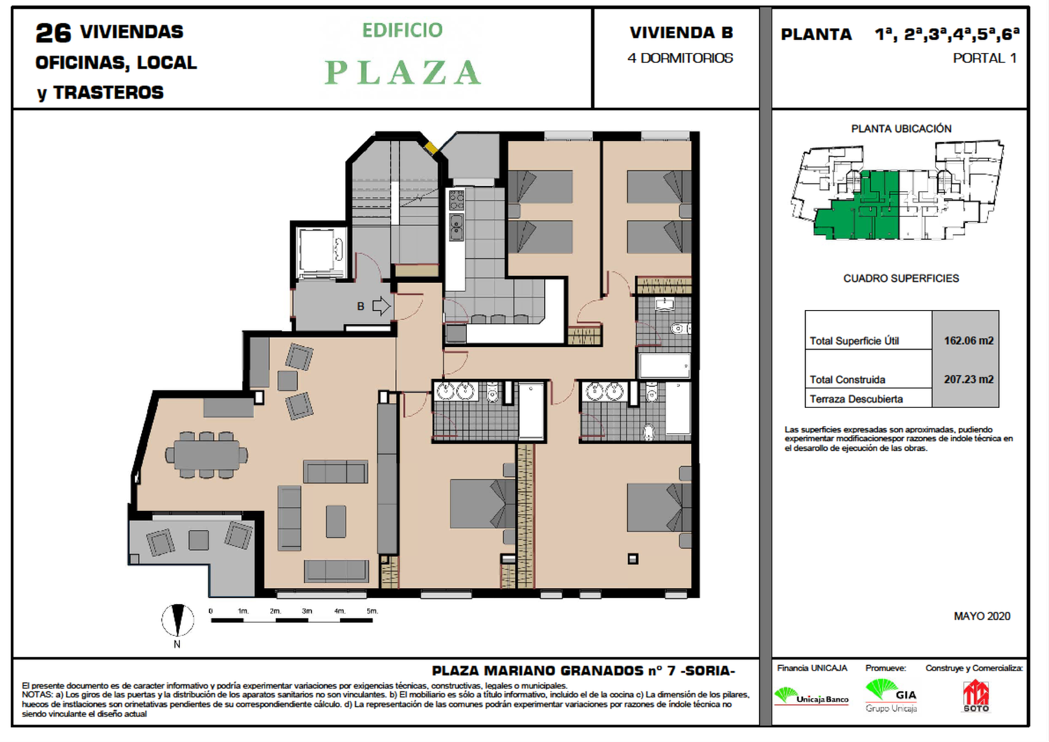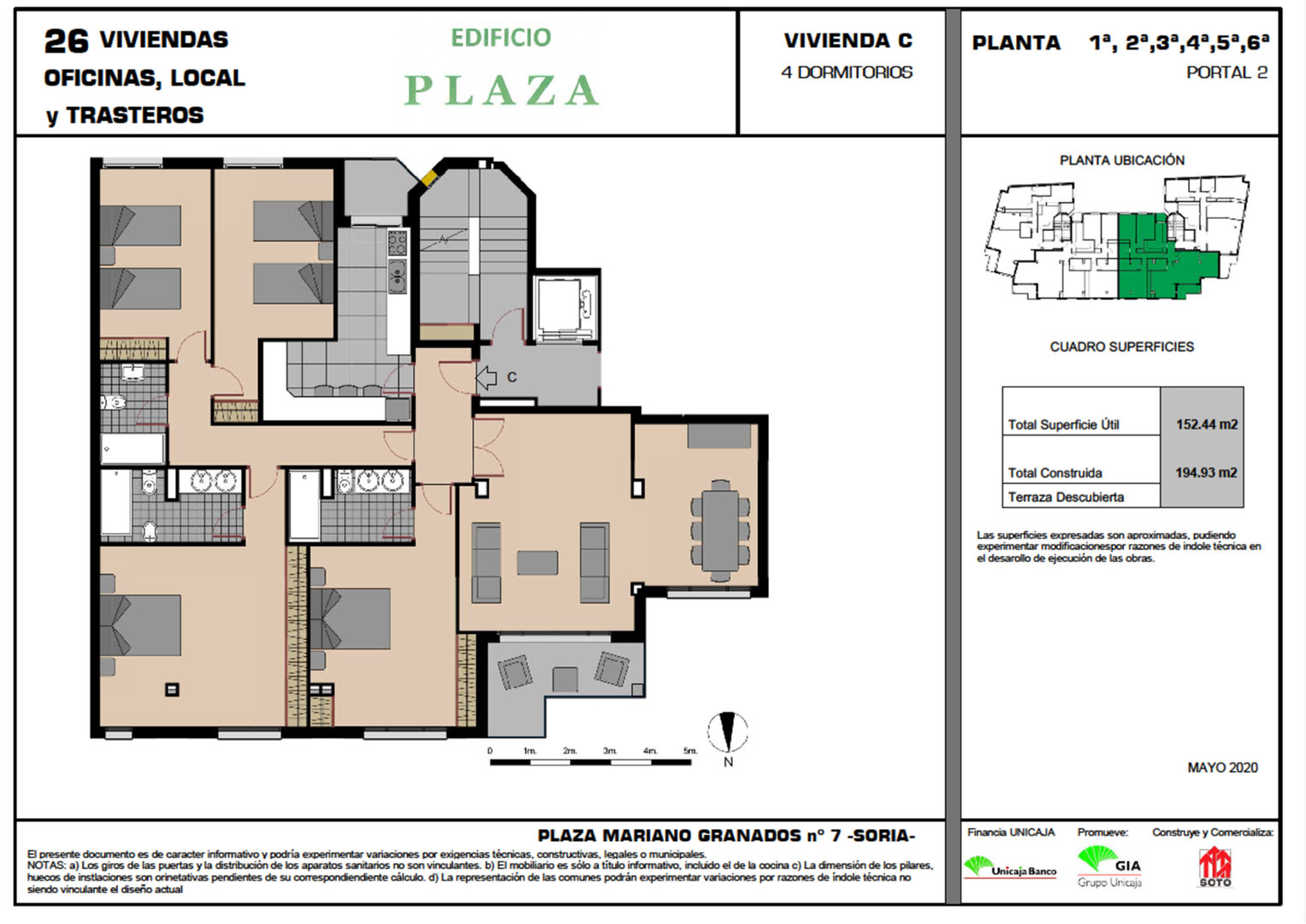 Piso con 4 habitaciones y 1 trastero (obligatorio la compra de 2 garajes no incluidos en el pvp) en Soria capital, en la calle MARIANO GRANADOS.